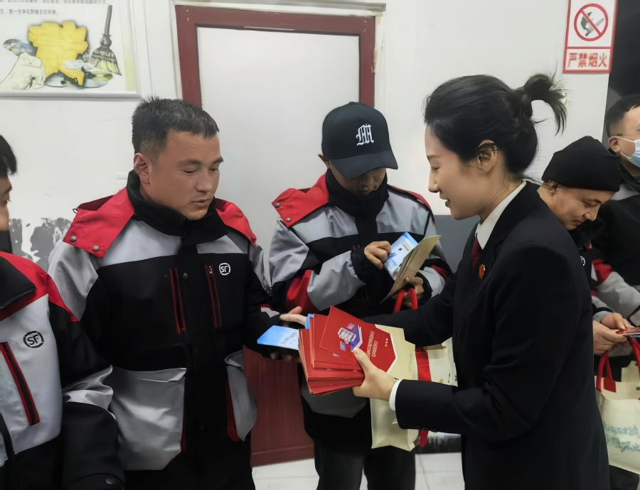 活动中,固原中院干警针对新就业形态劳动者行业特点,结合最高人民法院发布的首批新就业形态劳动争议专题指导性案例,从劳动关系概念引入,讲解了劳动合同的订立与履行、工资待遇与社会保险、新业态用工纠纷及常见风险点。通过以案释法,就新业态用工在劳动争议处理中出现的共性问题作出详细解读,为新业态用工依法维护权利提出法律建议,向快递小哥讲授了一堂精彩纷呈的普法课堂。